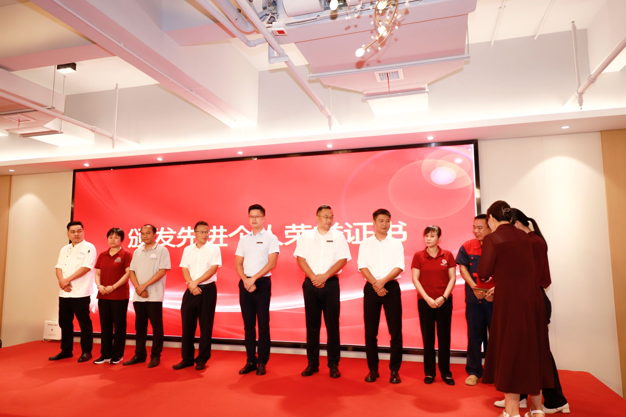 李婉萍为荣获先进个人的18名员工颁发荣誉证书。