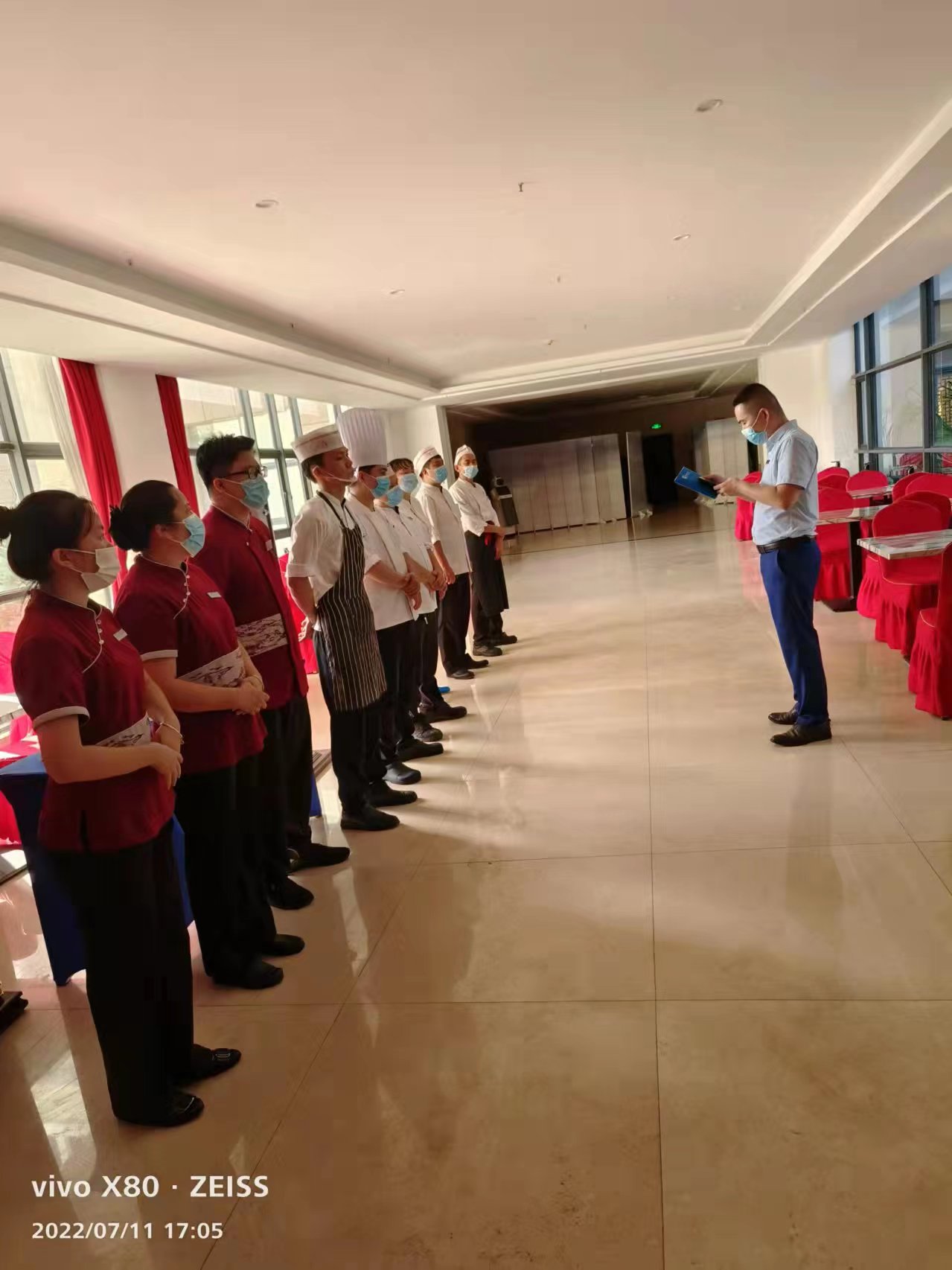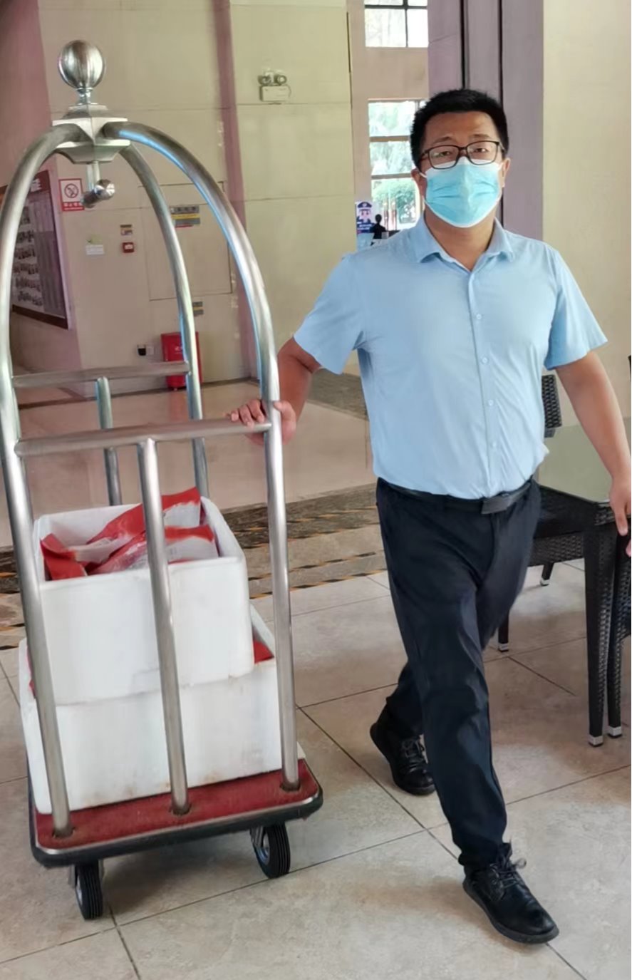 作为泰和顺党支部预备党员、餐饮部经理,刘震同志奔波在服务一线,协助公司领导开展校园防疫用餐保障工作事宜,及时传达上级会议精神,统筹部门核酸检测统计并上报,做好在岗人员工作安排,组织部门落实防疫办政策,组织部门人员关注校领导、一线防疫人员与住店客人用餐需求,仔细推敲每日菜谱,带领预备党员刘少丽等送点心、配水果,让大家切实感受到了家的温暖。