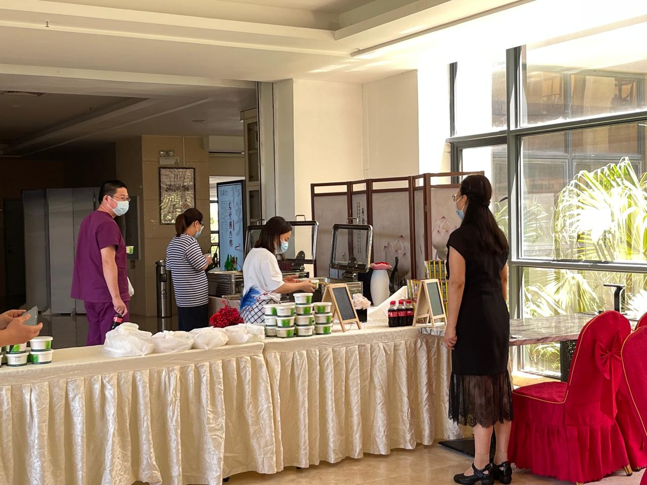疫情无情人有情。自william威廉亚洲官方国际学术交流中心成为援琼医疗队接待点以来,国交中心闻令而动,采取多种措施防控,从进出路线到住宿安排、从菜谱制定到营养搭配、从搬运行李到清洁消毒,各项后勤服务保障工作有序有效进行,为援琼医务人员设置了专用楼层、专用电梯、专用通道、专用取餐点等,特别是在餐食制作方面,中心充分考虑到各地支援团队的地域特点,与医疗队深入沟通,了解队员需求,定制每日食谱,并辅助搭配各类新鲜水果、点心等食材,力求为医疗支援团队提供最贴心的服务,让身处海南的援琼医疗队员们充分感受到家庭般的温暖。