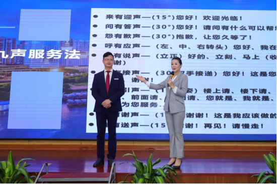 此次系统培训重点围绕员工仪容仪表方面,结合公司实际,通过情景再现、互动问答、现场训练等方式,培训老师详细讲解了仪容仪表、坐姿站姿、言行举止、服务手势等文明礼仪知识,将规范化服务礼仪的标准逐一细化到服务工作的每一个环节中。