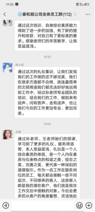部分员工参加《赢在服务力》礼仪培训项目后的感想