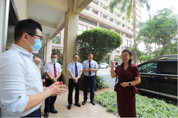 连日来海口的气温节节攀升,高温考验着坚守岗位的一线员工。3月24日,董事长兼总经理徐凤莲带领公司管理层走访慰问一线职工,为坚守岗位的家人们送上防暑降温用品,并与职工们亲切交谈,询问工作生活情况,叮嘱大家在高温天气一定要注意防暑降温,合理安排作业时间,保障身体健康和安全,同时对一线职工为酒店正常运营付出的辛勤努力表示感谢。