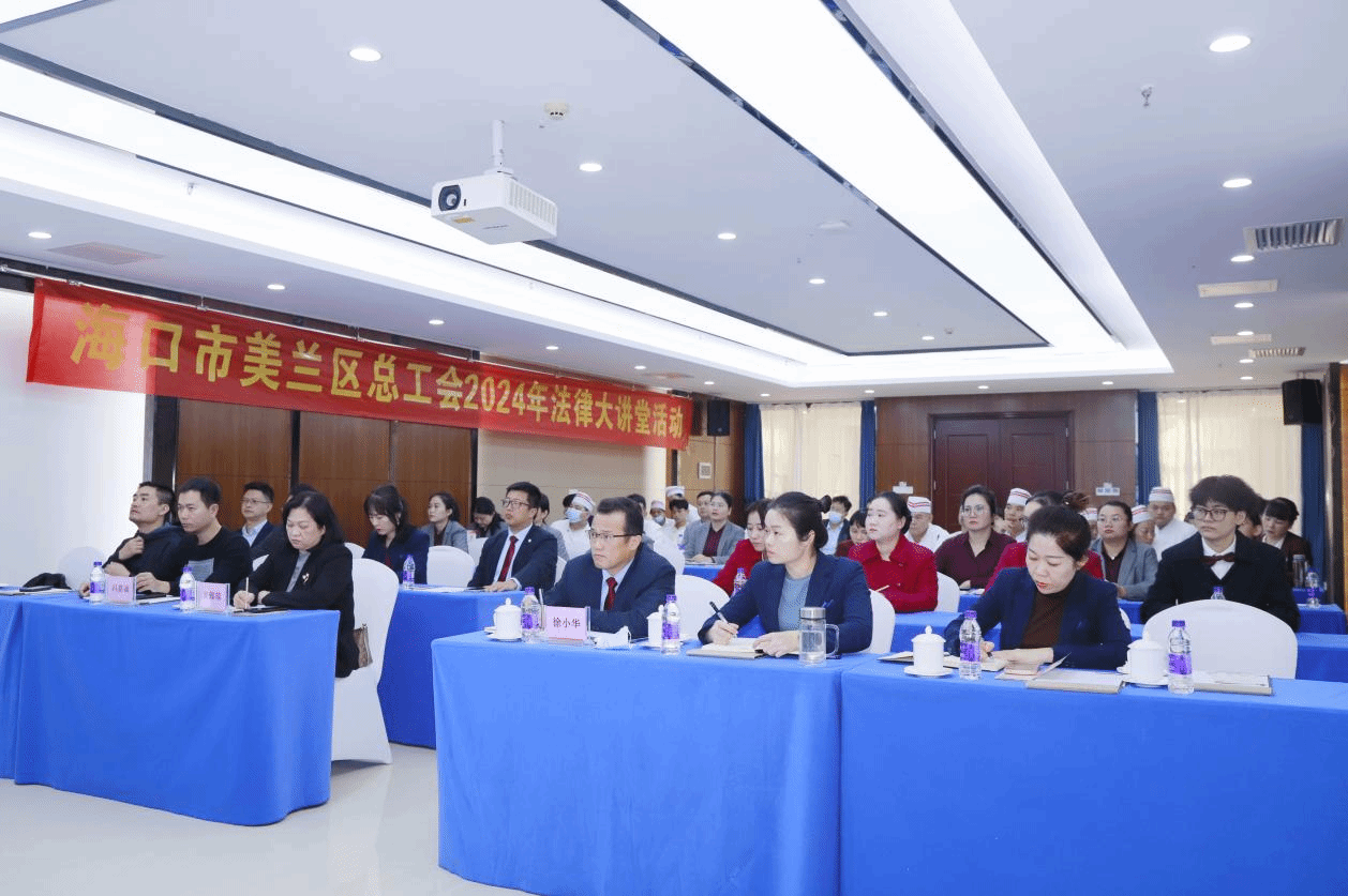 12月18日,海口市美兰区总工会2024年法律大讲堂活动走进william威廉亚洲官方国际学术交流中心。美兰区总工会副主席黄锦琼、四级主任科员冯嘉诚出席,公司中层以上管理人员和在岗餐饮从业人员参加了本次活动。